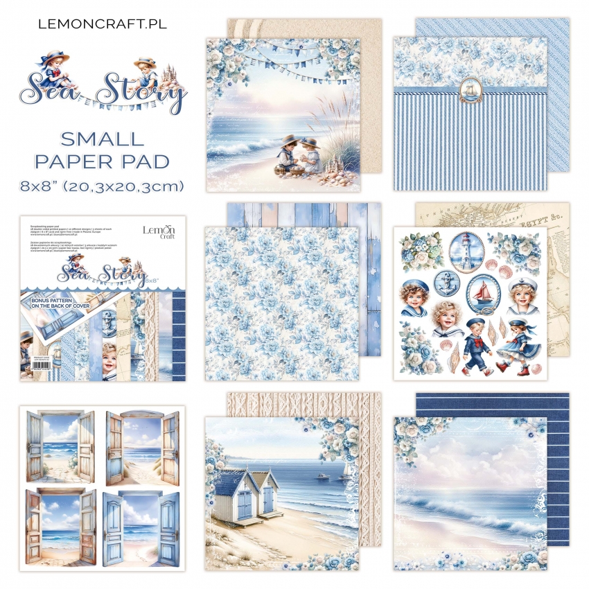 Mały bloczek papierów do scrapbookingu 20,32x20,32cm - Lemoncraft - LEM-SEASTO-02, kolekcja SEA STORY.