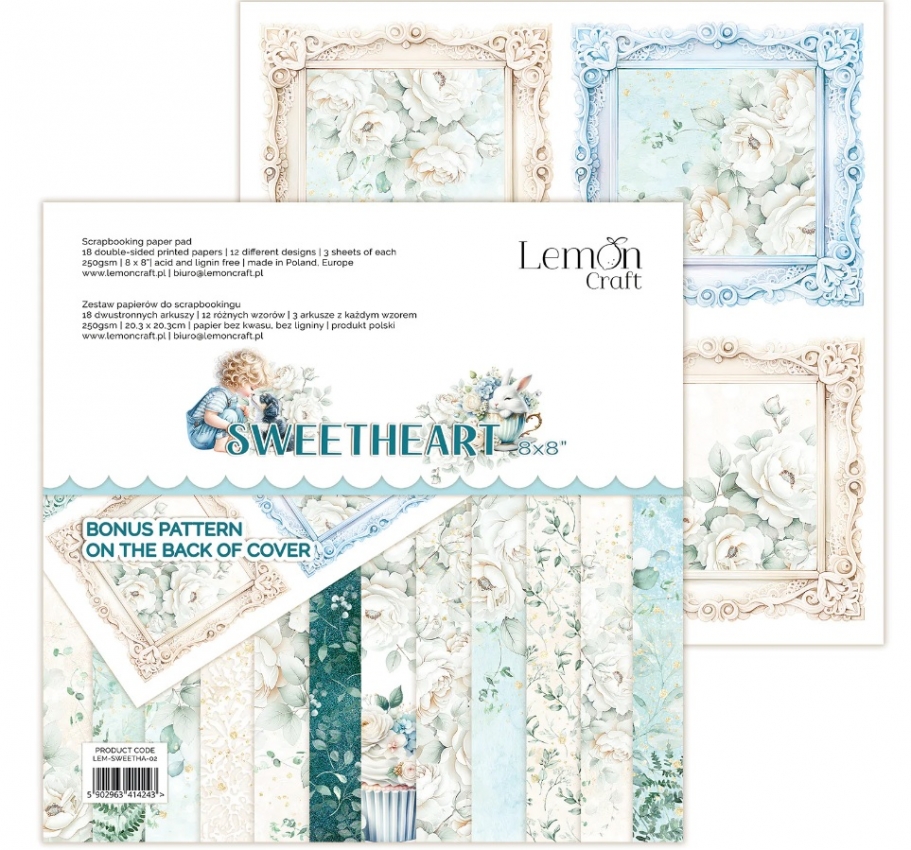 Mały bloczek papierów do scrapbookingu 20,32x20,32cm - Lemoncraft - LEM-SWEETHA-02, kolekcja SWEETHEART.