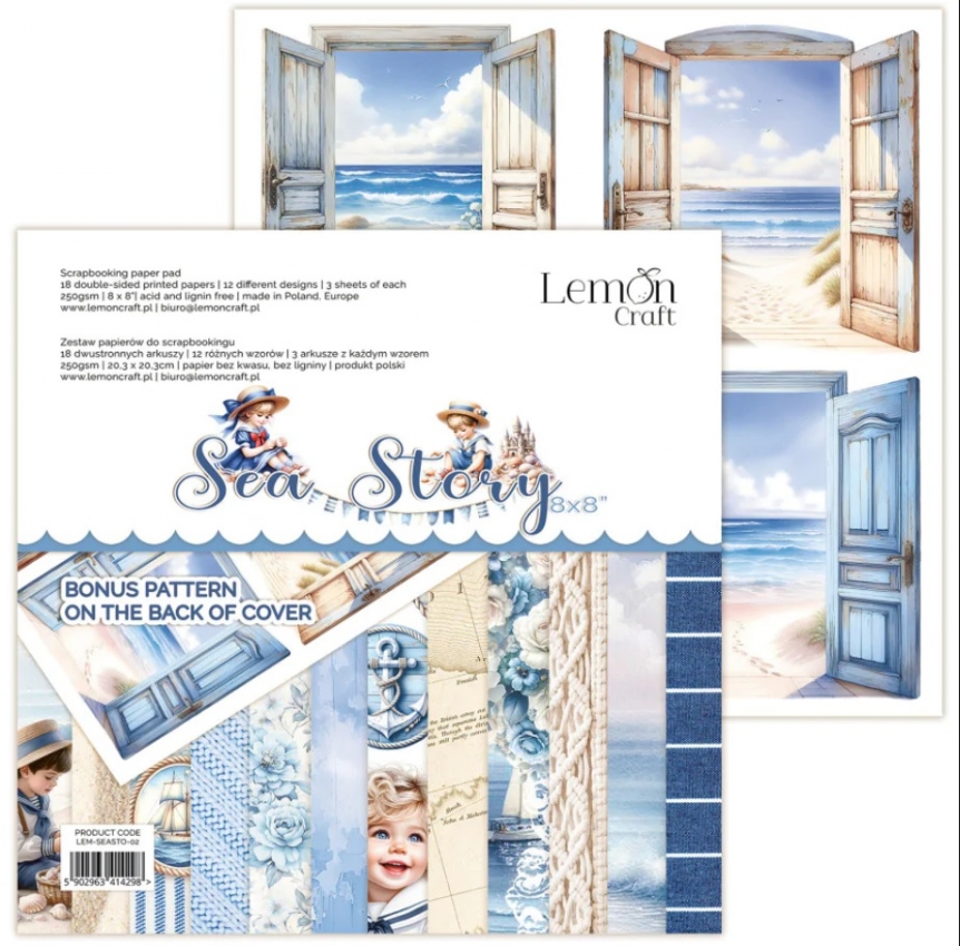 Marka: LemoncraftSea Story mały zestaw - Bloczek papierów do scrapbookingu 20,3x20.3cm - Lemoncraft