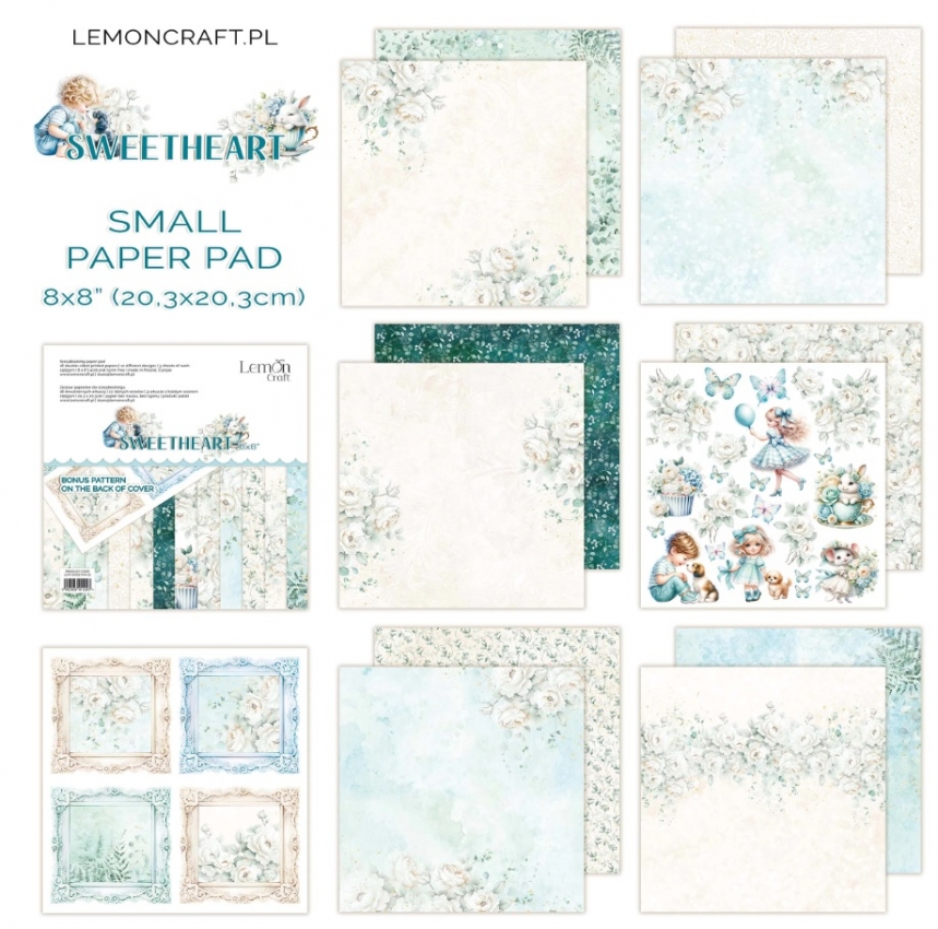 Mały bloczek papierów do scrapbookingu 20,32x20,32cm - Lemoncraft - LEM-SWEETHA-02, kolekcja SWEETHEART.