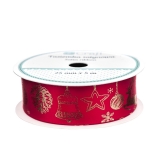 TASIEMKA SATYNOWA CHRISTMAS, 25mm x 5m CZERWONA